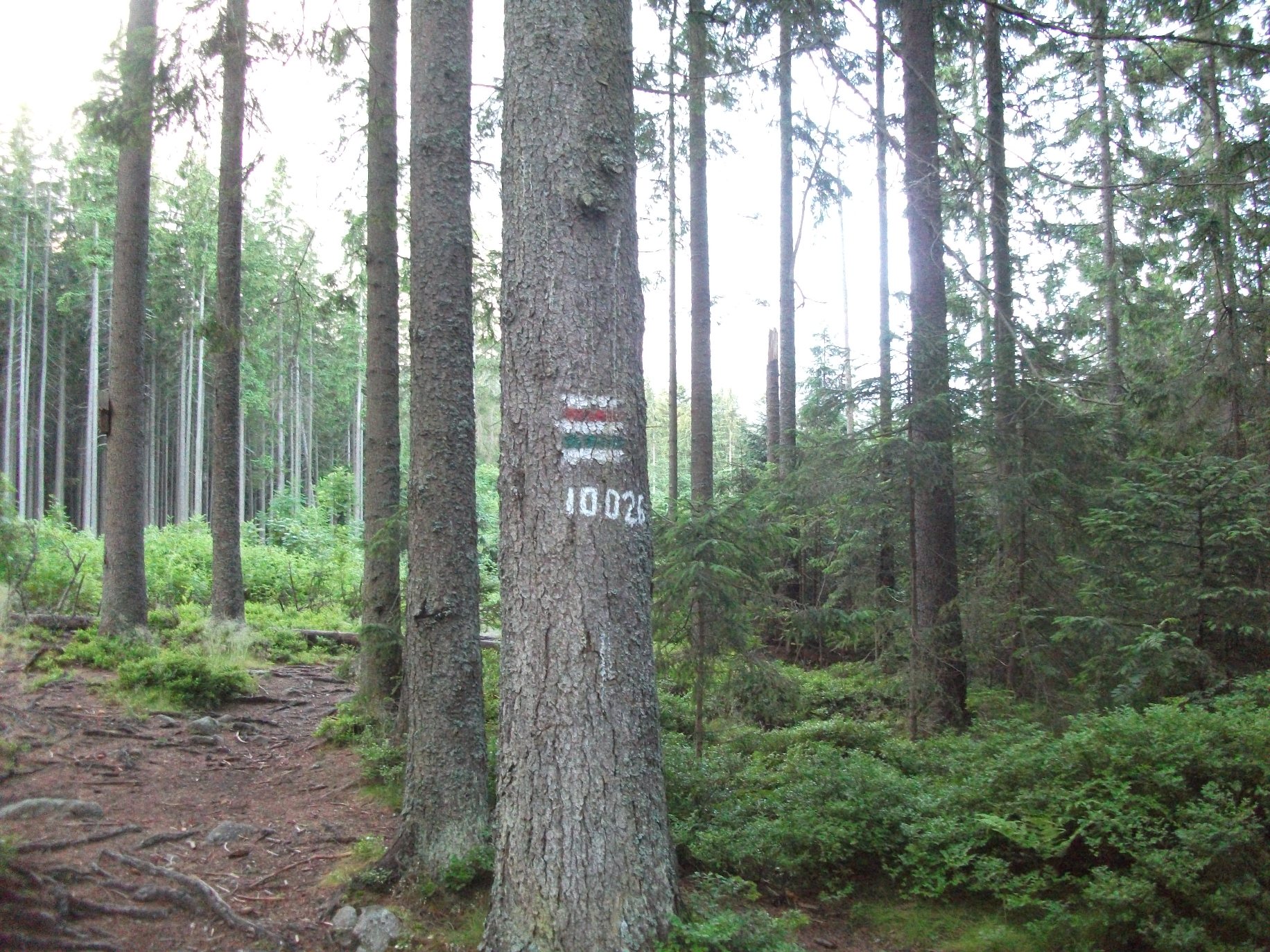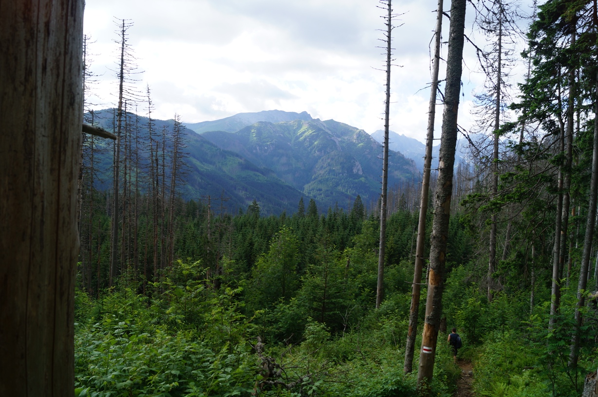 We found the trail!Oh but then we were free, free I tells ya! We climbed over the fence and crossed the road and we were on the actual trail through the national park. From here on in it felt so much easier. The peace that comes with seeing the red paint on the trees telling you that you are going the right way, bliss. The trail was empty and in the 4 hours we hiked through it we saw only 1 lone man walking in the opposite direction, I actually got a bit of a fright as all I heard was snapping twigs and heavy breathing and thought BEAR (I have an active imagination, I scare myself stupid with things that could happen… sharks are another of my ultimate fears so I don’t swim in the sea…). I have no idea why more people don’t take this trail to Morskie Oko, it is breath-takingly beautiful, the views you get when you come out into a clearing, the little bridges over the streams, the sun light streaming through the gaps in the trees to give the forest floor a magical shimmer, it’s gorgeous. It’s long, but it’s gorgeous.