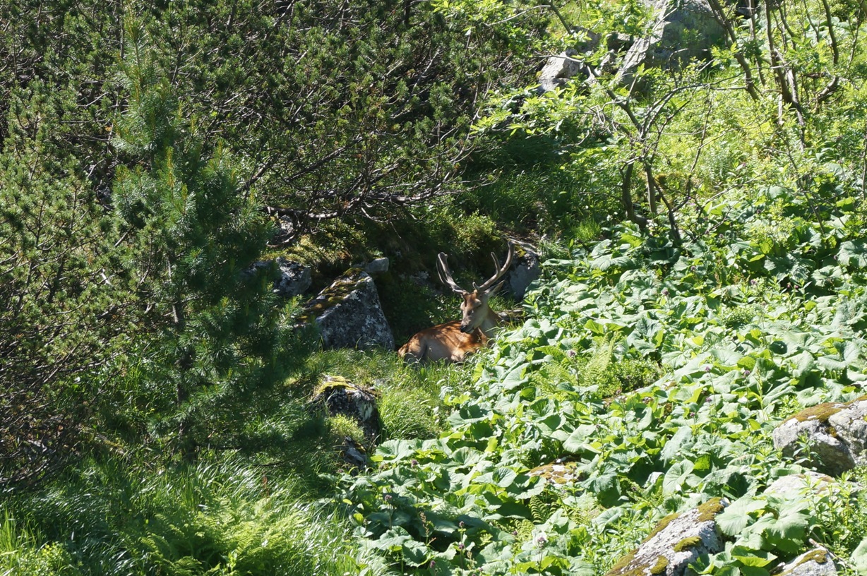 About 3 quarters of the way up there was a couple staring off into the hills and taking photos of something quite specific and me being extremely nosey had to see what it was. A stag, a beautiful stag, right there about 20 metres in front of us, nibbling on the grass and finding a shaded place to rest. What a sight to behold. We climbed to the second lake and the view back over Morskie Oko is sublime, turn around and you are faced with the ascent to the tip of Mount Rysy, which we are saving for our next trip to Poland! We jumped up onto a rock by the lake and just took a while to gaze around and rest out weary legs before making the descent back down.
