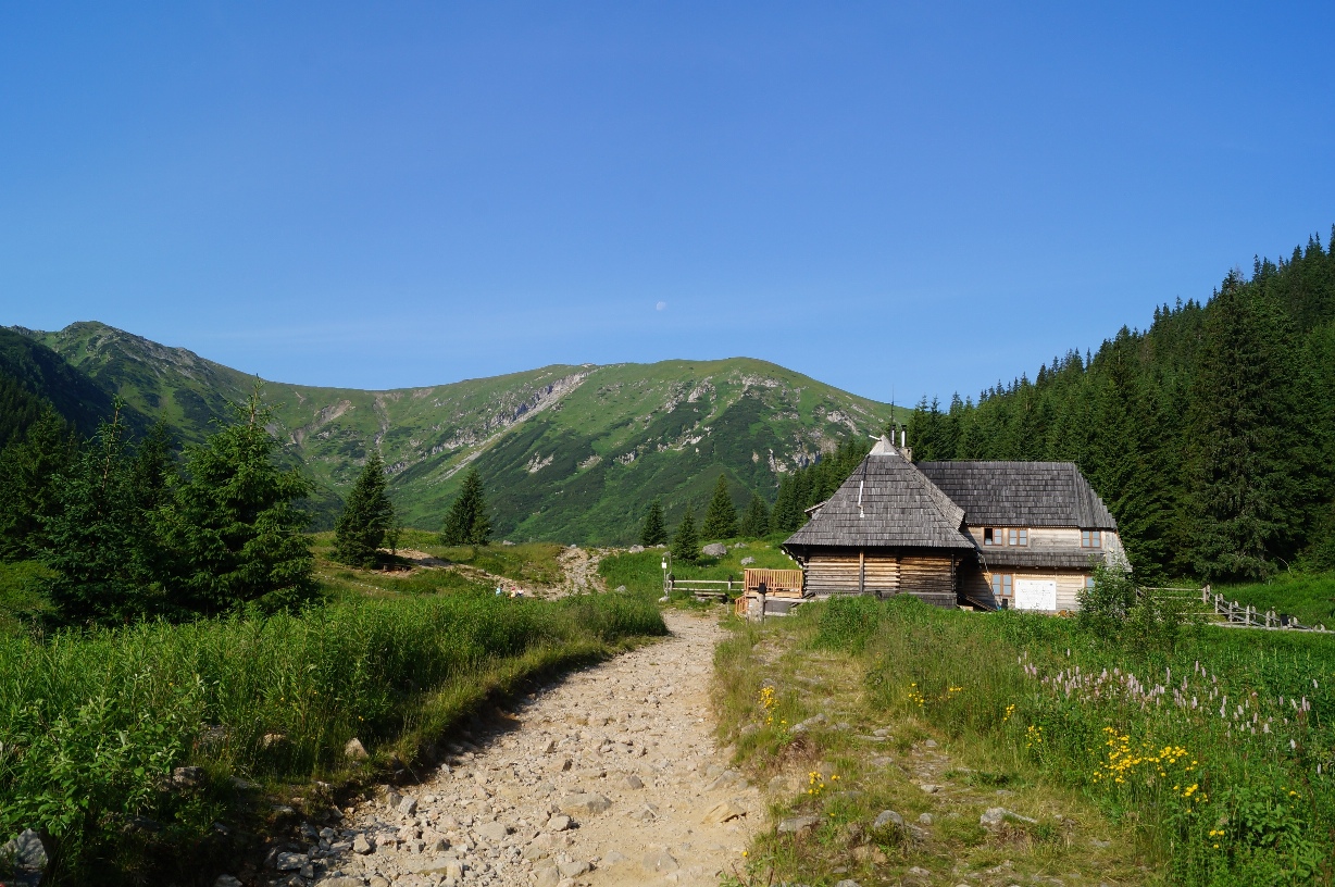 We came out of the shaded forest area and headed up towards the Hala Kondratowa Hut that gives you a great little place to have a rest, grab a snack, in our case a breakfast bar, and get yourself ready for the next part of the trail. It’s here that you can also join the Green trail if you are walking along the top of the mountains towards Kasprowy Wierch.