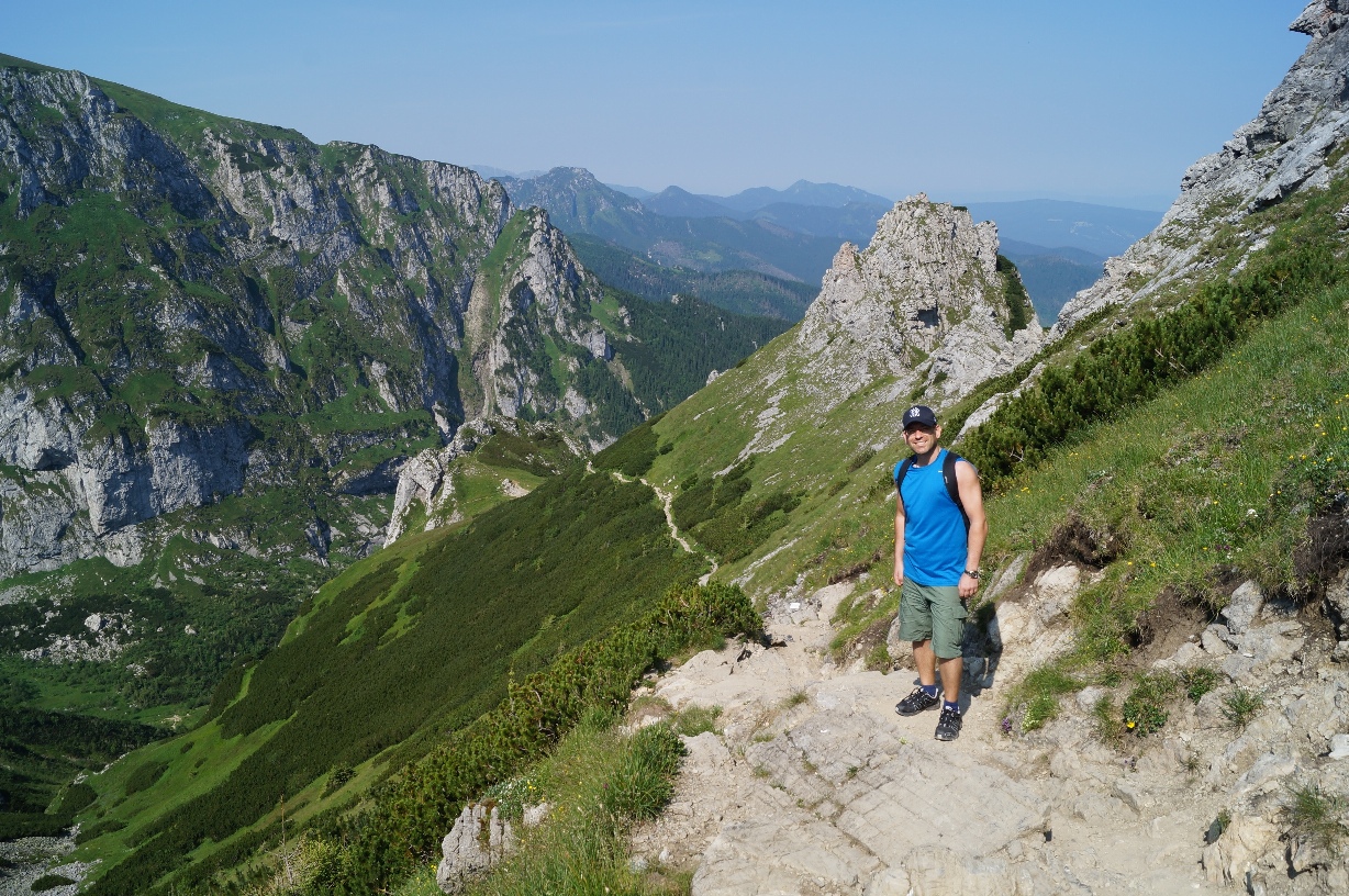 Once you get to the top you arrive at Kondracka Przełęcz, the beginning of the climb to the summit. I had bought a pair of fingerless sport gloves the day before which I put on now, took a deep breath and headed up! It helps that Martin is like a kid in a sweet shop desperate to get to the top, his energy spurred me on as I didn’t want to disappoint him or make him go on his own. As we got higher and higher we got to the point where we had to use chains to go any further. Martin just looked at me, knowing this could well be a spanner in the works, the rock surface up there is really slippy, but if you’ve got a good pair of walking boots/shoes on it’s no problem at all. I paused here for a minute or 2 as this was the part I had been fearing most. A woman came up behind me and just grabbed onto the chains, hauled herself up onto the stone and kept climbing and I thought, yep, easy does it and followed suit. It was exhilarating, truly a mind changer, I was so focussed on where I was putting my feet and where the next chain was and the adrenaline really kicked in so that I completely let go of the panic and fear of being so high up, when we got to the top it was such a boost for me, I couldn’t believe I’d succeeded.