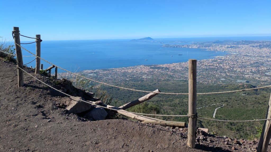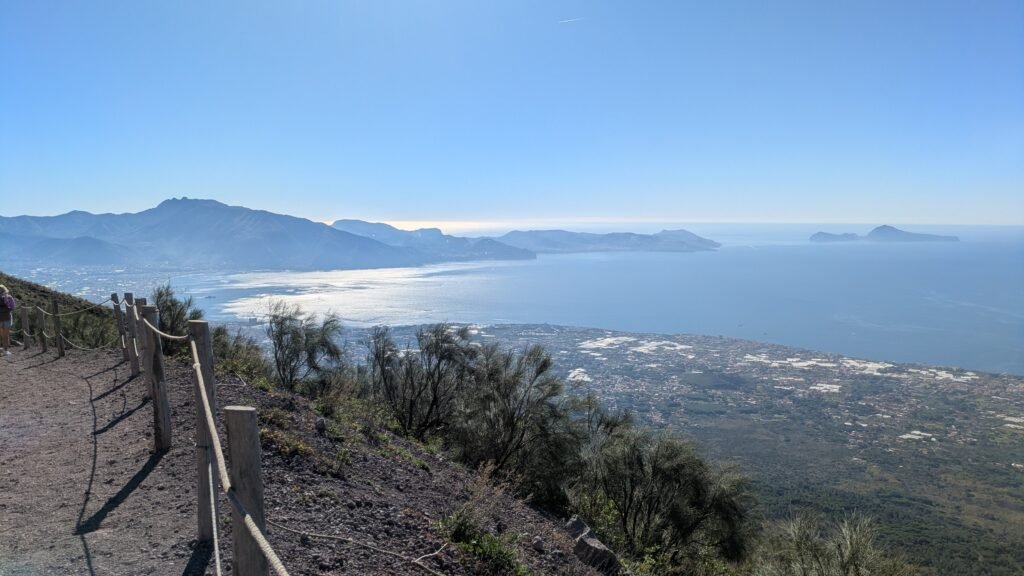 Once we arrived, we disembarked and passed through the checkpoint before beginning the roughly 1km ascent to the summit via the Il Gran Cono route. This path takes you around the rim of the crater and, on a clear day, offers sweeping views all the way to Naples, Capri and the coastline leading towards Sorrento. It really is beautiful.