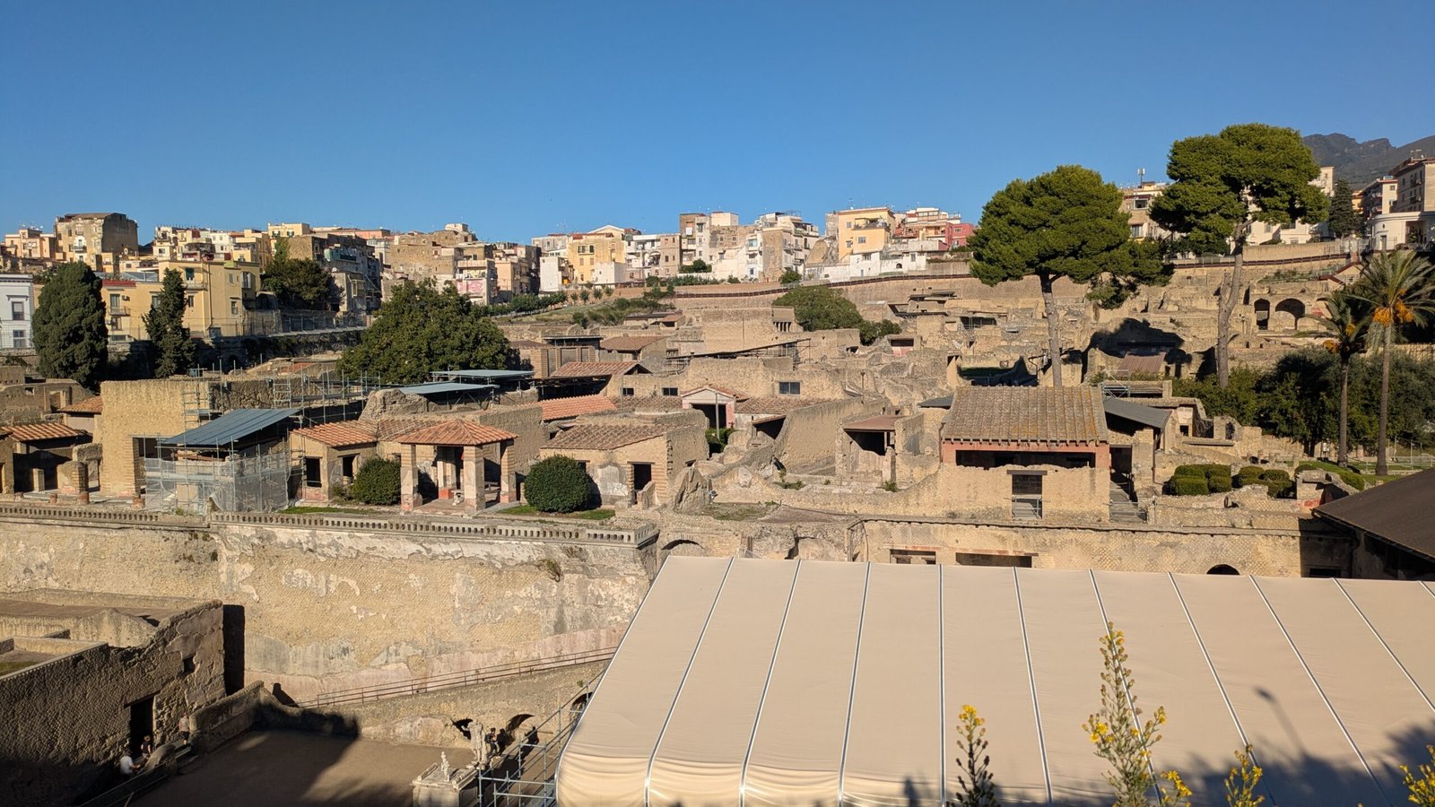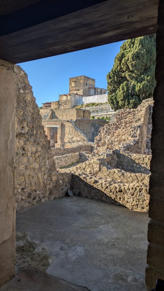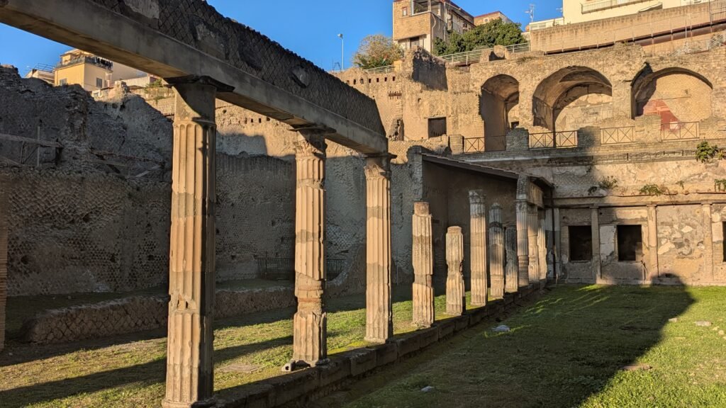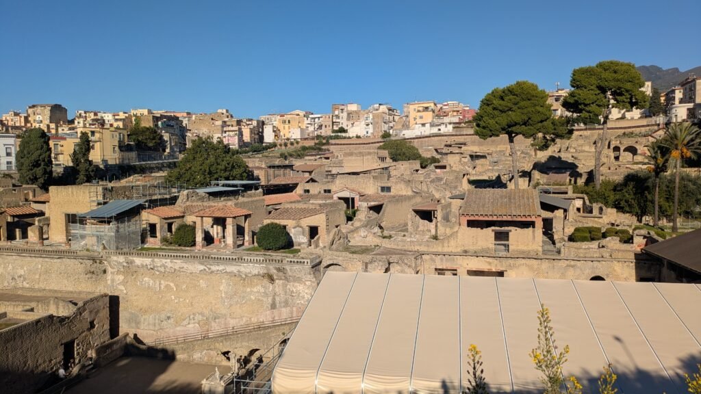 After a quick supermarket stop for lunch supplies, it was back to the day’s adventure. We walked just over 3km along Corso Resina towards Herculaneum (Ercolano). This is a vibrant, lived-in town, full of daily life. Children being collected from school animatedly recounted their day to parents and grandparents and it was genuinely lovely to experience this slice of local life as we made our way to the ruins.