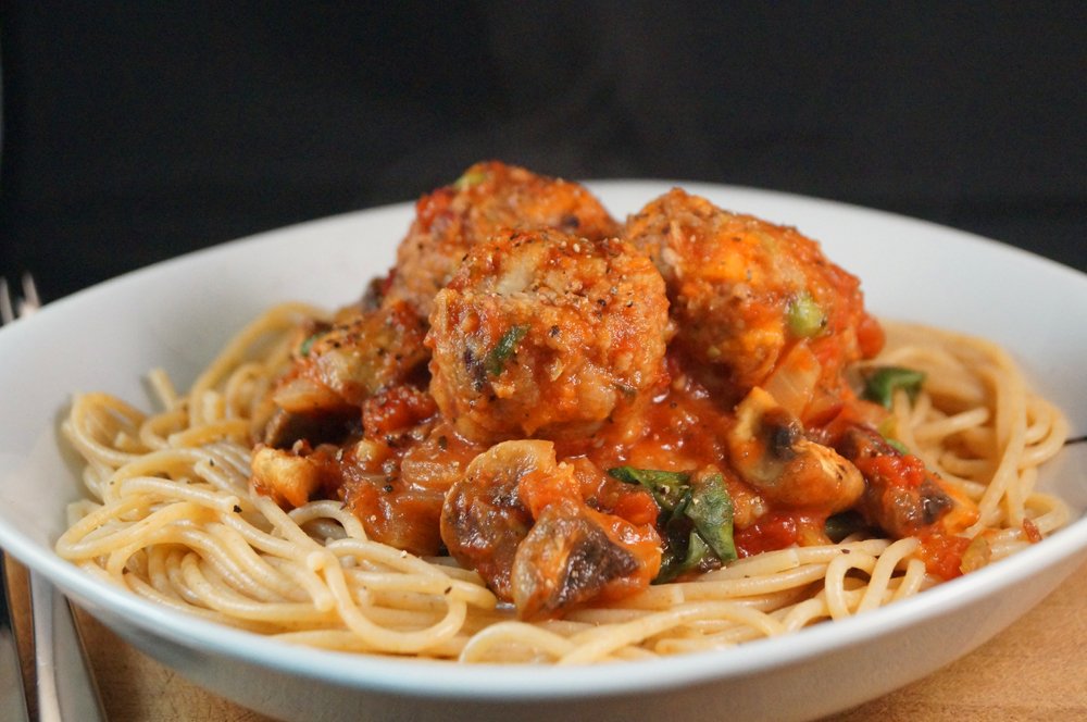 Mushroom Spaghetti Marinara with Veggie Meatballs (vegan & gluten free option)