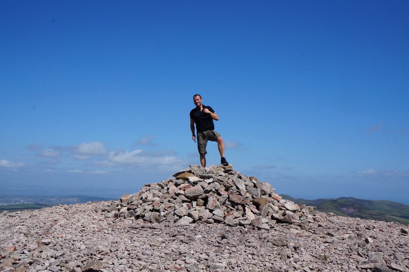 Now the hard part begins, the hike up to Scald Law, the highest peak in the Pentlands. I felt like Sam in LOTR following Frodo into Mordor. It was quite the scamper up the hill and when we got close to the top the wind hit us. It was a full on gale, I was almost blown off my feet (well that’s what it felt like anyway, I may or may not be a drama queen!). The views from there are wonderful, if you can keep your camera steady long enough to take a photo or two and Martin nearly lost his glasses a few times, he’s definitely wearing contacts if we do that again!