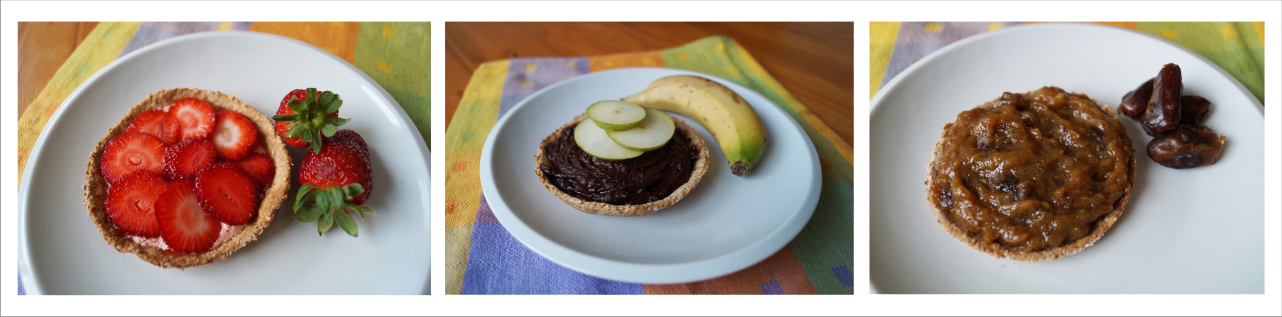 Trio of Afternoon Tea Tarts (Vanilla & Strawberry, Pear Topped Banana Fudge, Toffee Pear) (vegan & gluten free option)