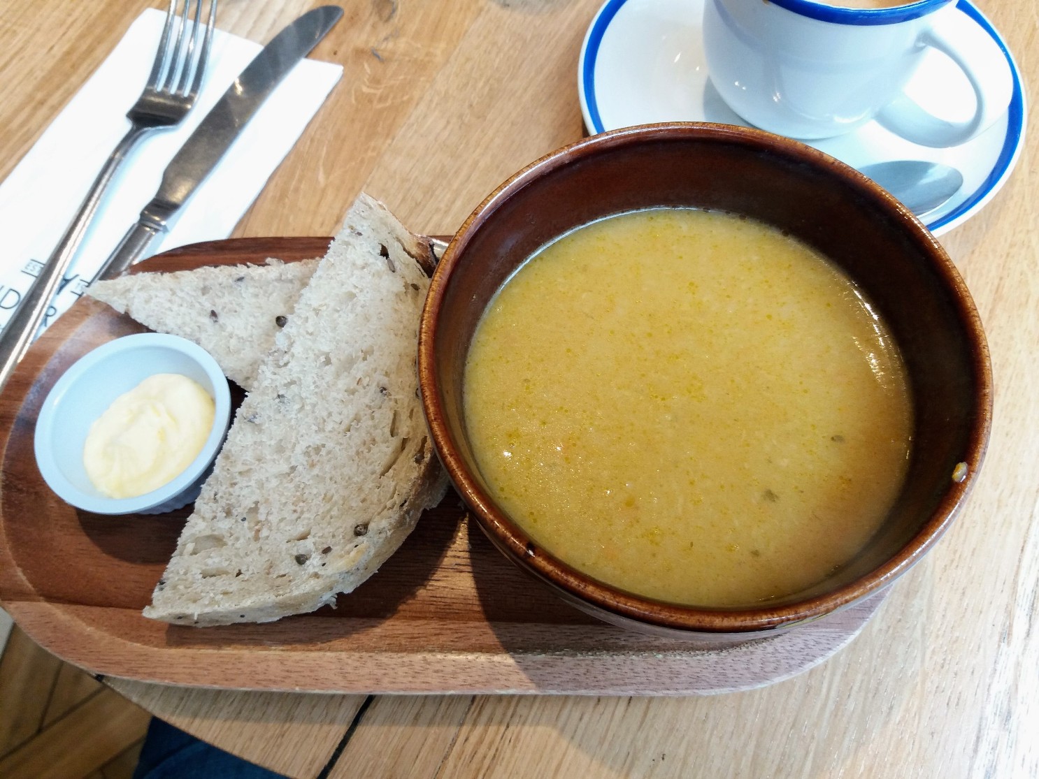 We popped into the Vegan Bistro just for a cup of coffee, but were tempted by the sound of the soup of the day which was fennel, apple and mint served with sourdough bread which was incredible.