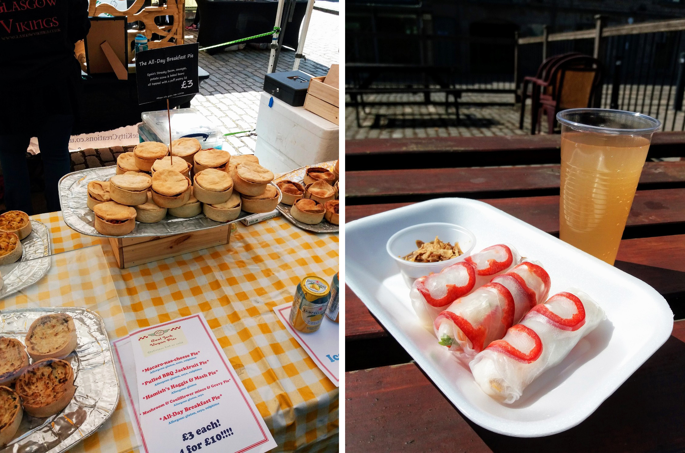 We were very fortunate to find Cool Jerk Pies stall at the vegan quarter of the market and suffice to say, we filled our boots with goodies. We had the Pulled BBQ Jackfruit pie, a couple of All Day Breakfast Pie and a Hamish’s Haggis & Mash pie, you got 4 pies for a tenner and that was a lunch and a dinner taken care of. The BBQ Jackfruit was my favourite from the batch and I have to try and get back to try out the Macaro-nae-cheese Pie.