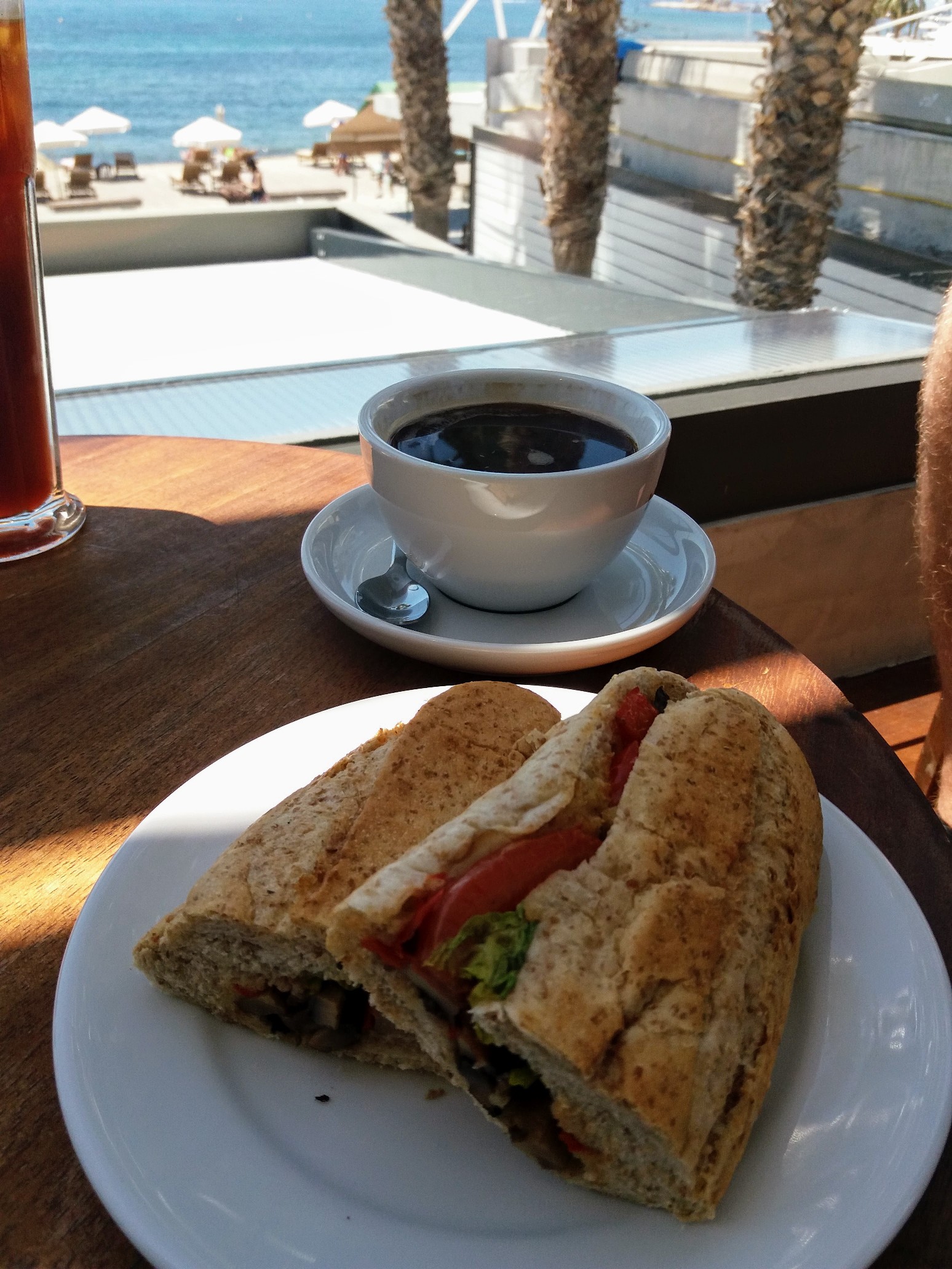 There is a new Caffe Nero opened up (May 2017) and this place is lovely, with views out over the sea and harbour area. There is lots of seating outside (although it can get a little smokey, but that’s the same in most of the coffee shops with outside areas). They have the vegan Roasted peppers and mushroom baguette which I quite like, especially washed down with an iced Americano!