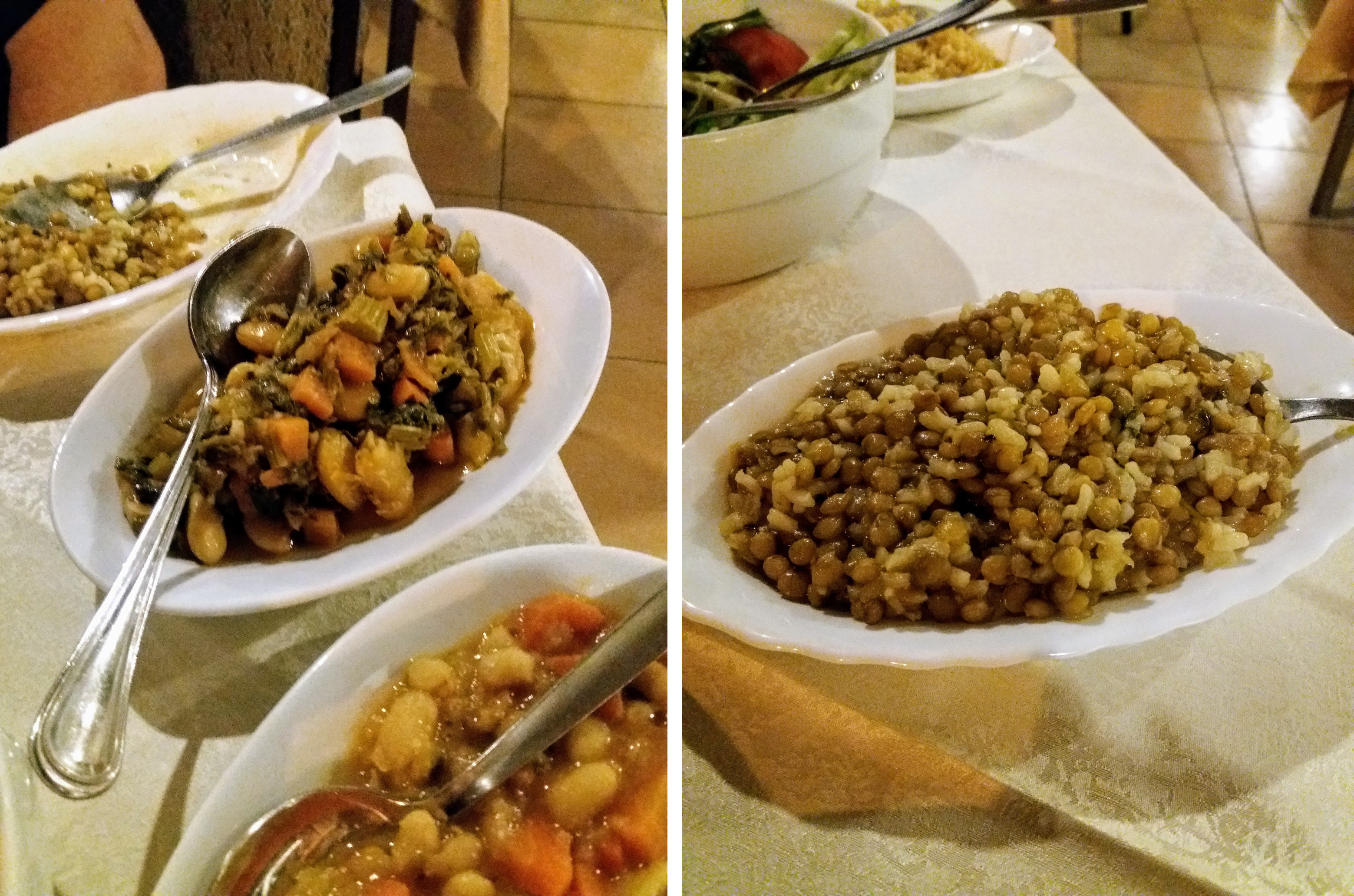 We started off with the local dips, hummus, tahini, olives, salad, beetroot, pickled peppers and then we had some traditional Cypriot dishes including lentils cooked in coriander, lemon and olive oil, butter beans with carrots and spinach, cous cous with tomatoes, Taro stew, grilled aubergine with vegan cheese melted on top and I think there were a couple more but I was already in food heaven and had lost any train of thought. No sooner had the plates been cleared when we were advised there was a choice of 3 different desserts (and no, fruit platter was not one of them!) we could choose between chocolate cake, apple pie or baklava, so apple pie it was, although we were fit to burst from the main meze how can you say no to pie, so we shared a slice.