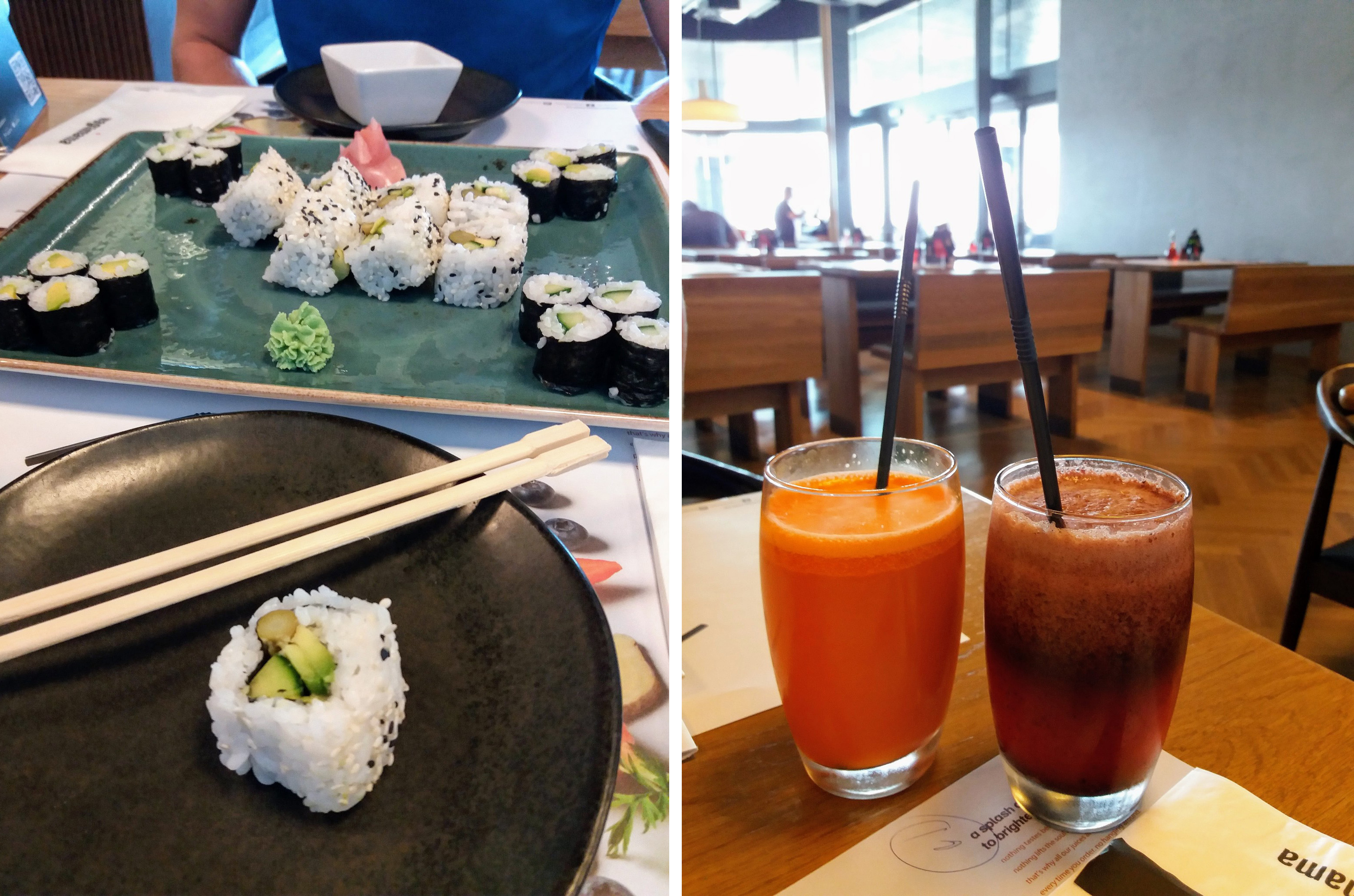 They do a few great options, but we always go for the Yasai selection – 24 pieces of veggie sushi which feeds the 2 of us easily for lunch and of course a fresh juice!