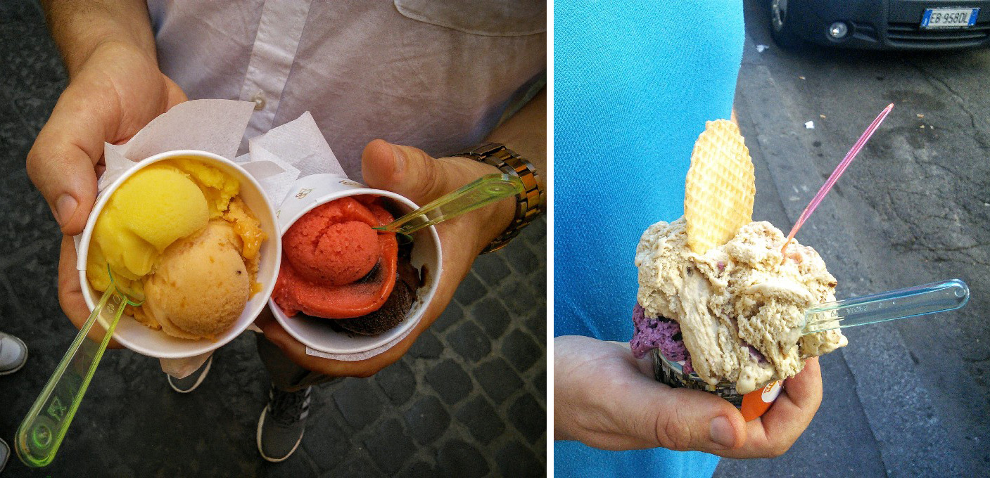 But as I mentioned before, you can always just wander into a pizzeria and grab slices of pizza without the cheese, they have quite a few to choose from including mushroom, courgette or peppers, then find a good gelateria and fill your boots with some sorbets, there are always a great selection of senza latte (without milk) options available.